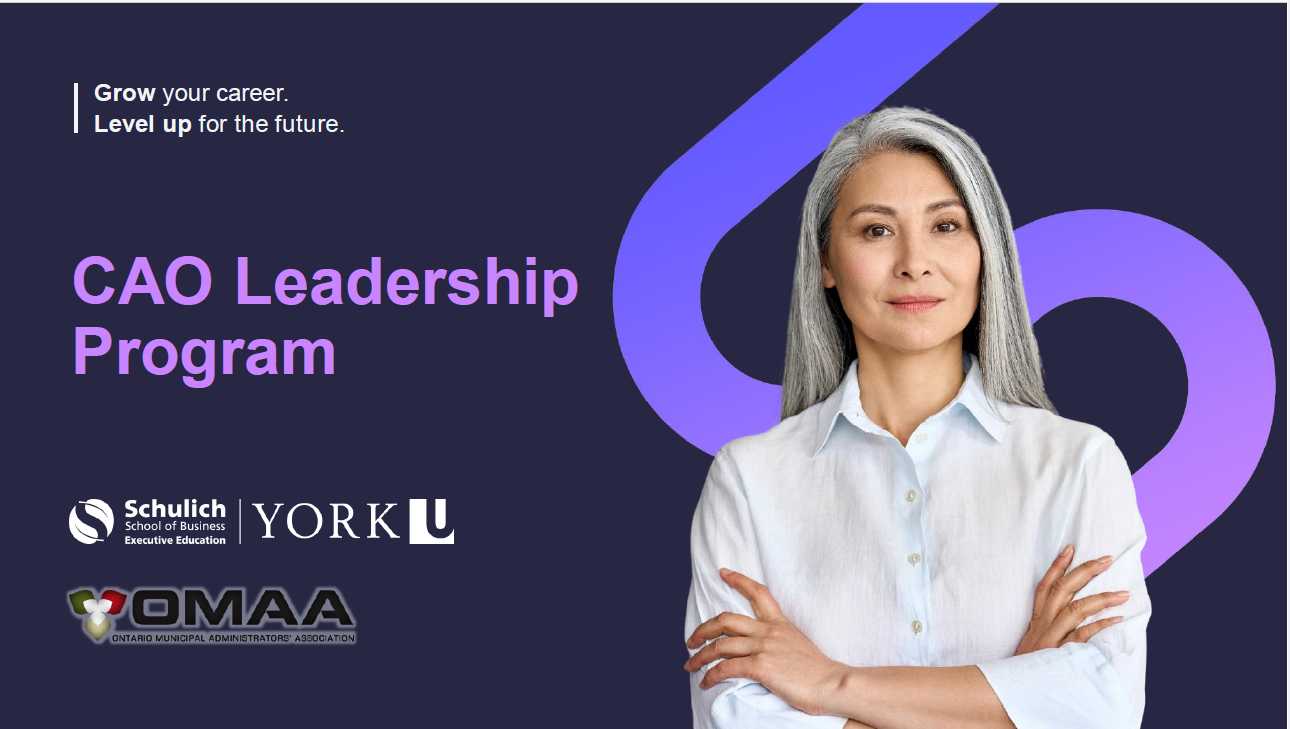 The OMAA- Schulich CAO Leadership Program is ideal for CAOs and Aspiring CAOs in municipalities of all tiers and sizes across Ontario. Professional managers and key decision makers will gain the vital leadership skills, strategies, and methods needed to better support elected officials and effectively implement Council policies, levelling up to more senior roles. Classes are offered In-person at the Nadal Centre or Virtually.
